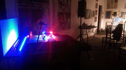 FLAMENCO MAGNÉTICO is the last piece in a series of sculptural machines that began in 1989. The current installation uses three pieces out of an edition of ‘Flamenco Machines’ from 1999 with Galerie Andreas Schlueter, Hamburg. In 2005 they played in FLAMENCO MAGNÉTICO the film, which was the basis for an installation by the same name in 2008. In 2014, the set was completely rebuilt to achieve a more theatrical performance with new sound and light. And to fit into a suitcase.